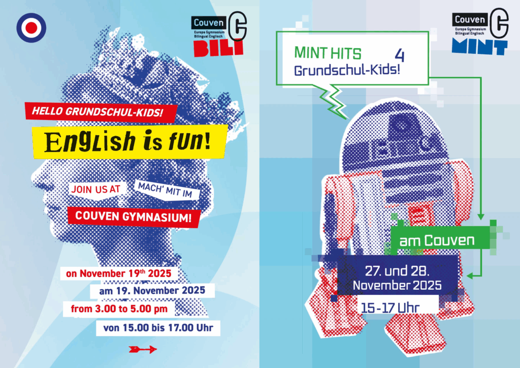 Auch in diesem Jahr laden wir Grundschulkinder herzlich ein, das Couven spielerisch zu entdecken: Bei ‚English is fun!‘ taucht ihr in die Welt der Sprache ein, und bei den MINT
